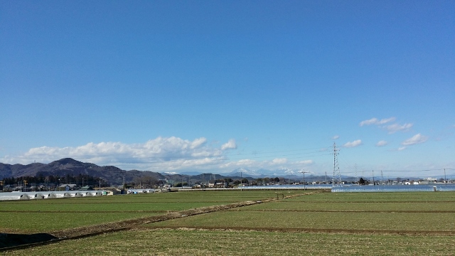 遠くに見える県北の山々は