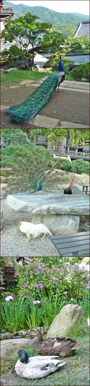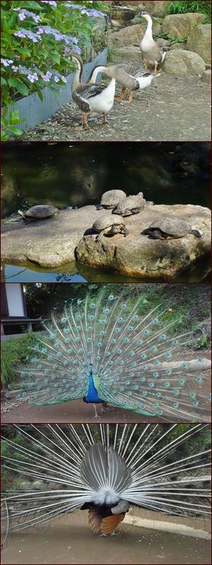 クジャクとチャボの