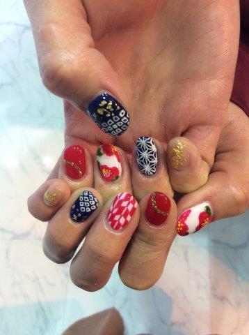 絞り 椿 麻の葉 矢絣ネイル![]()