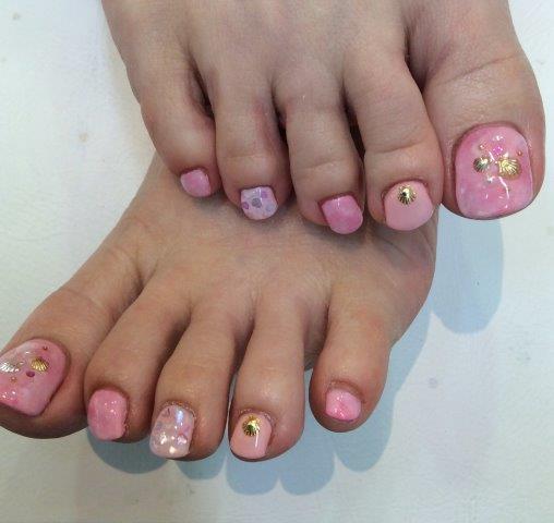 ピンクタイダイフットネイル![]()