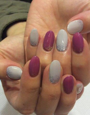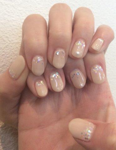 グレージュ1色塗りにシルバーラメを乗せた