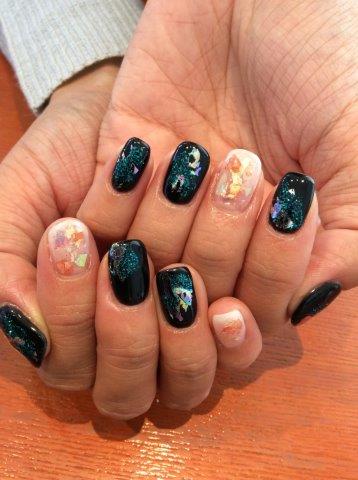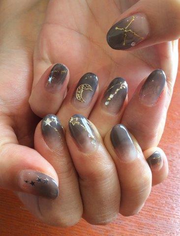 グレージュ 星座 宇宙 銀河ネイル![]()