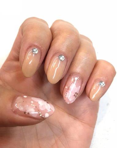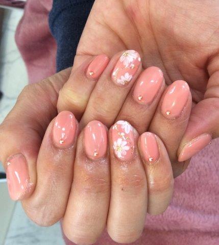 ピンクベージュシンプルフラワーペイントネイル![]()